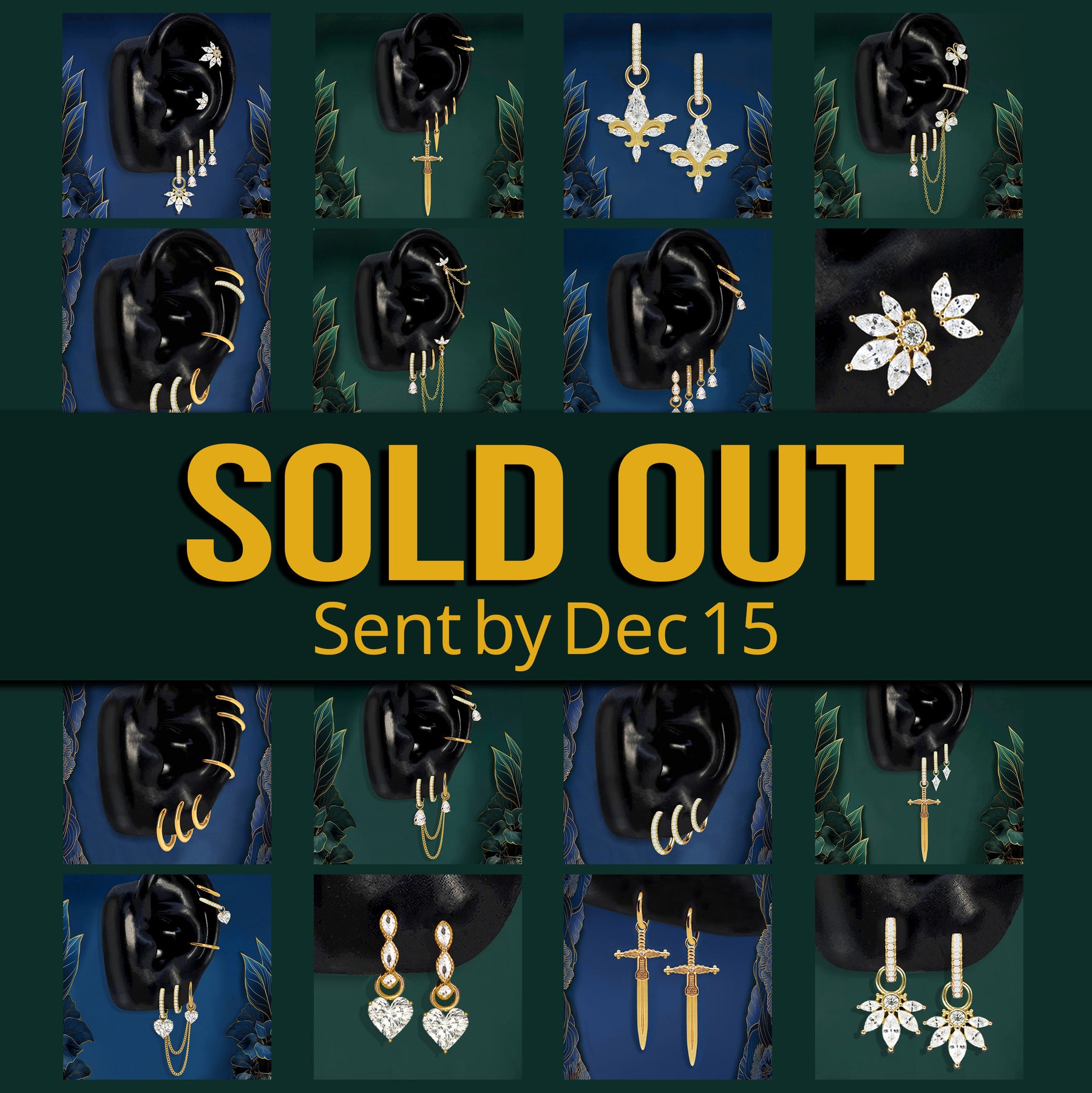 - 50+ Pieces: Pendants, Hoops, Flat Back Studs, Chains & Double-Piercing designs