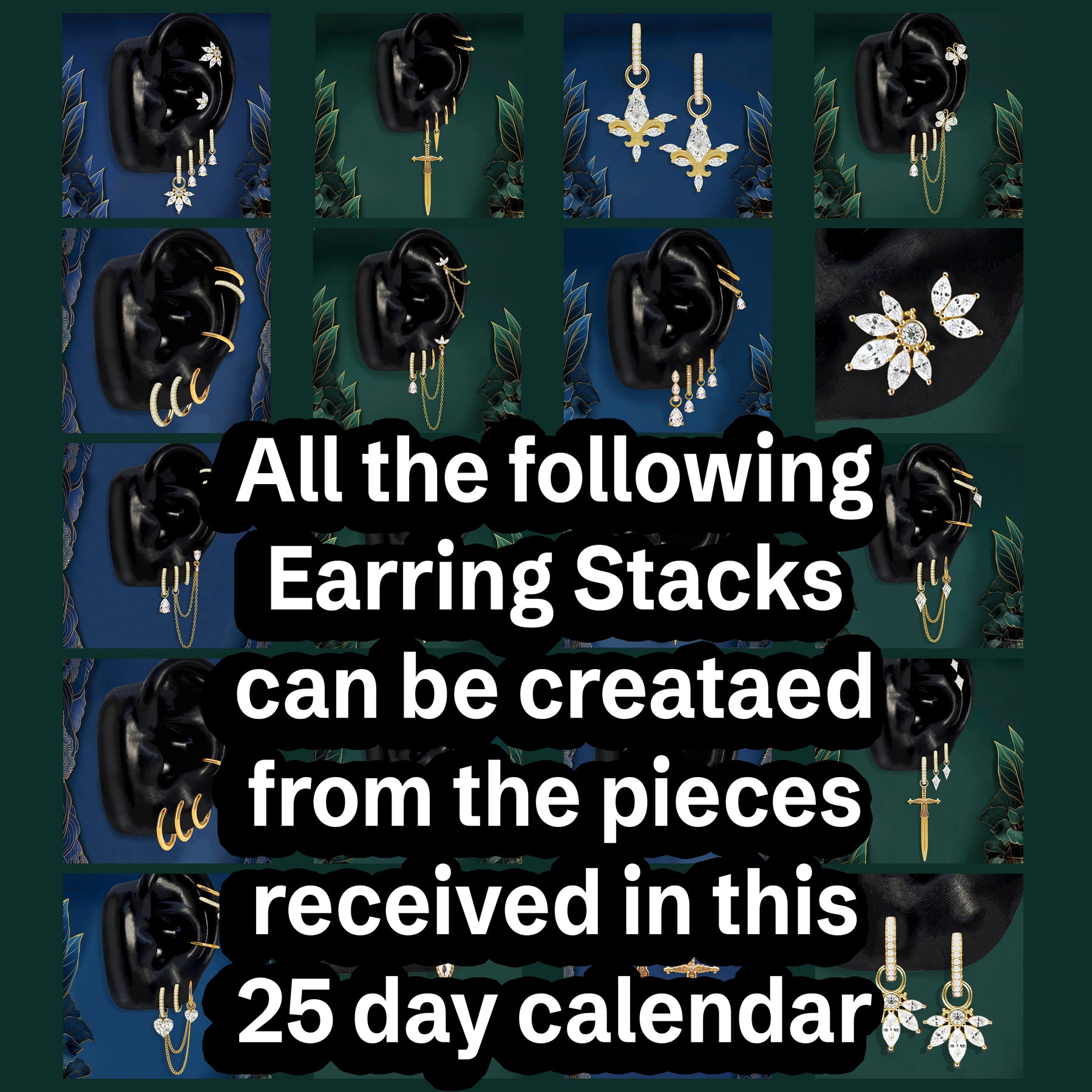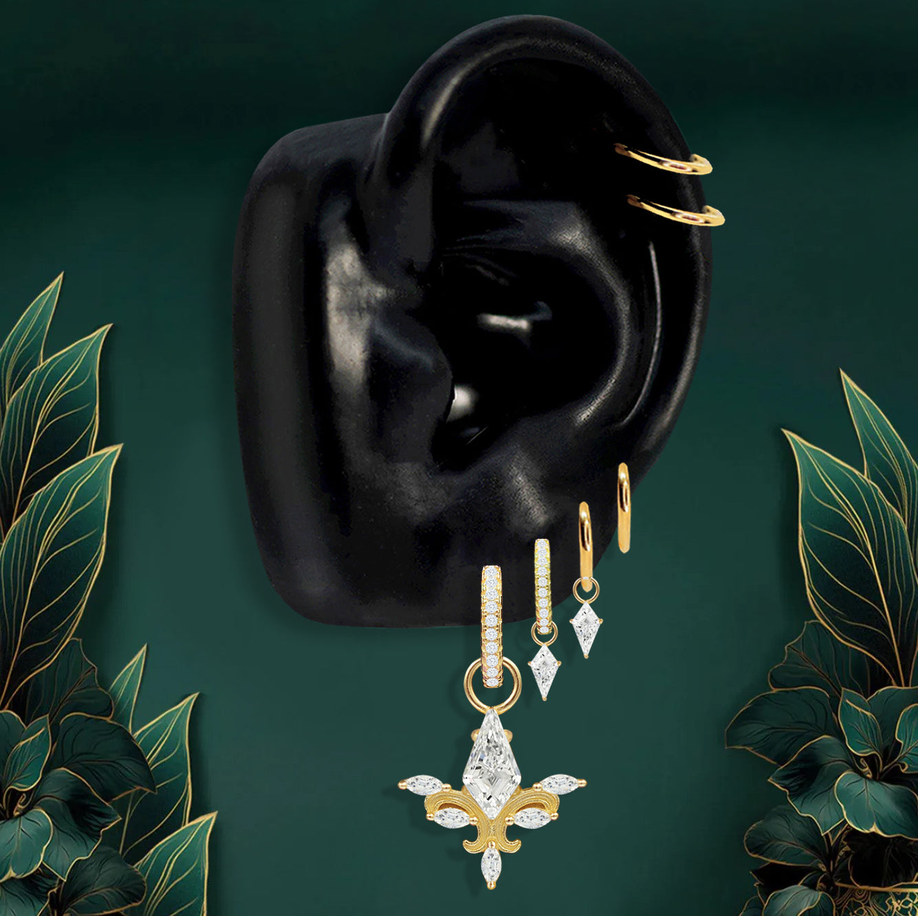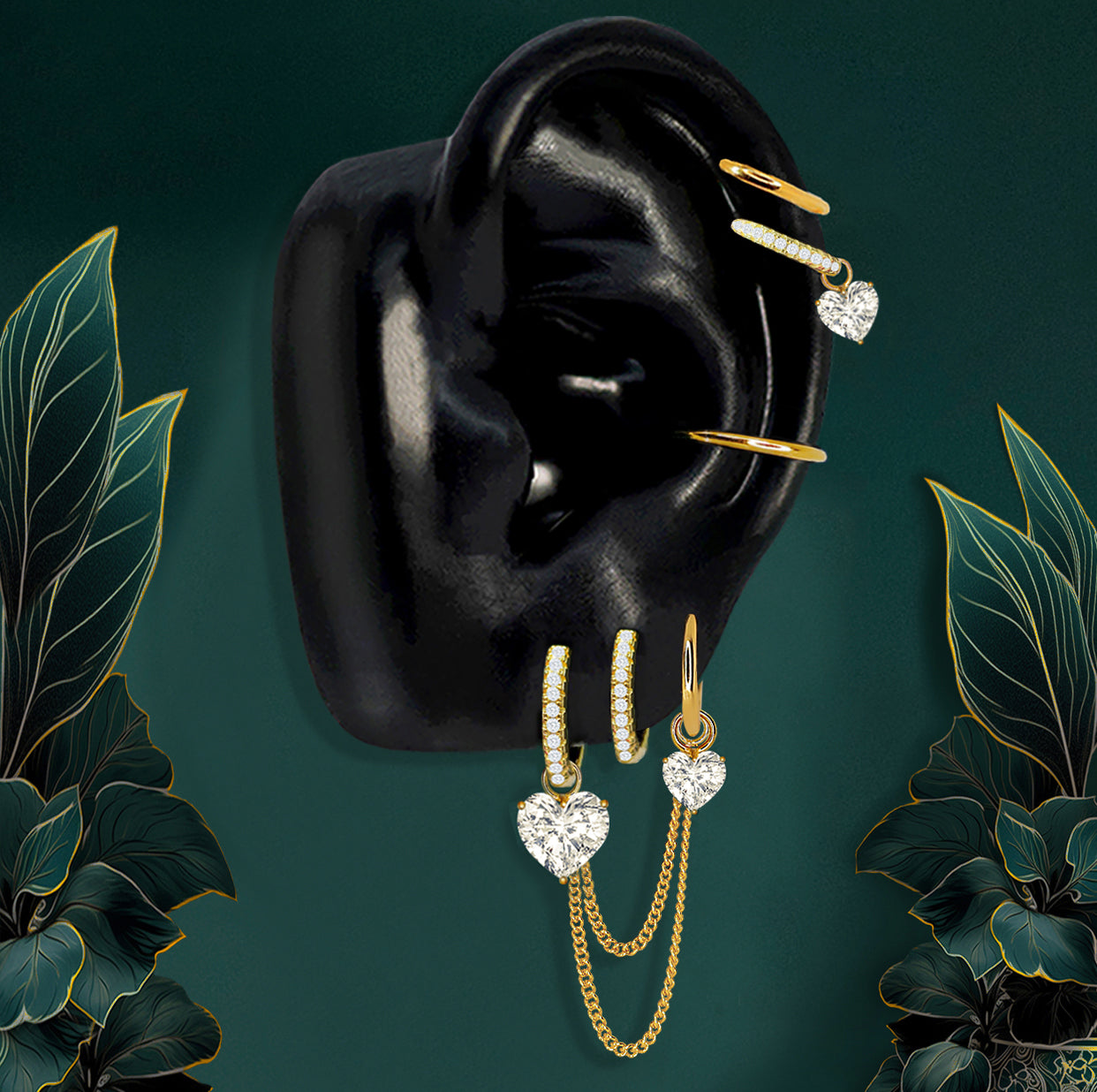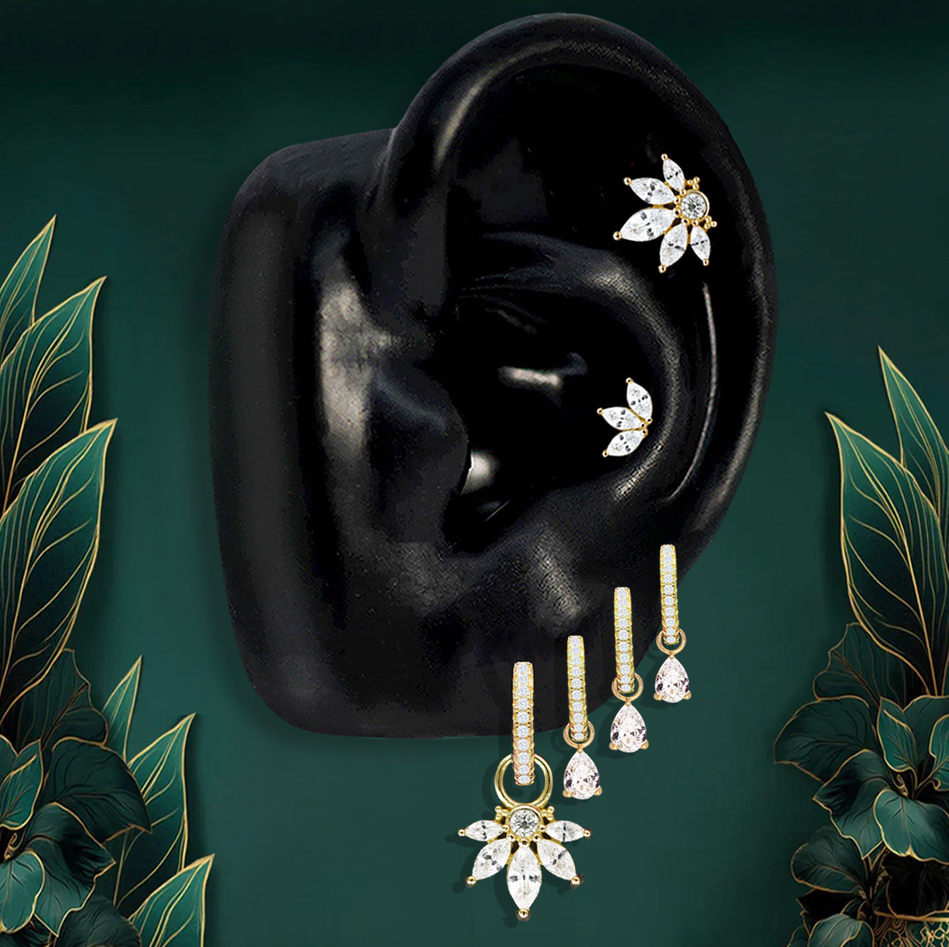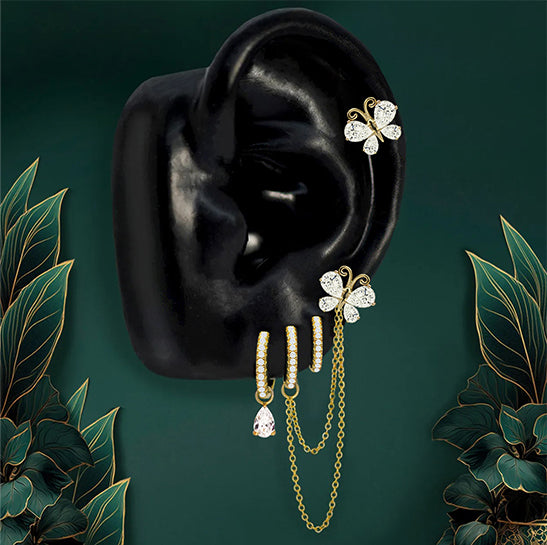- 50+ Pieces: Pendants, Hoops, Flat Back Studs, Chains & Double-Piercing designs