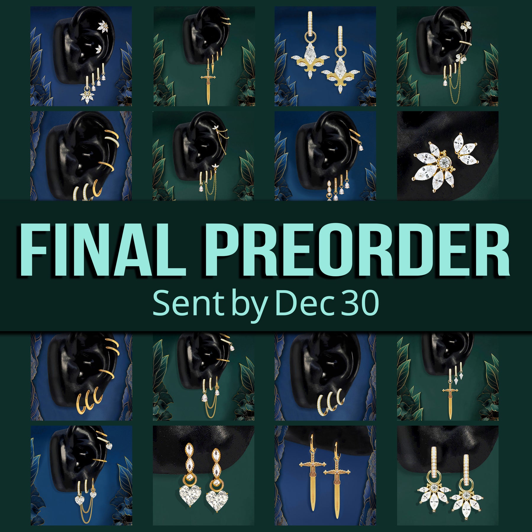 - 50+ Pieces: Pendants, Hoops, Flat Back Studs, Chains & Double-Piercing designs