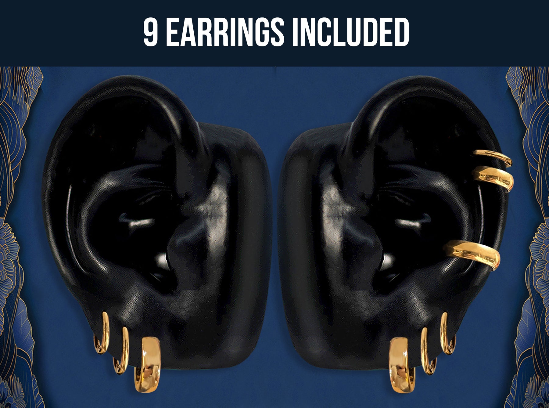 - 9 earrings included