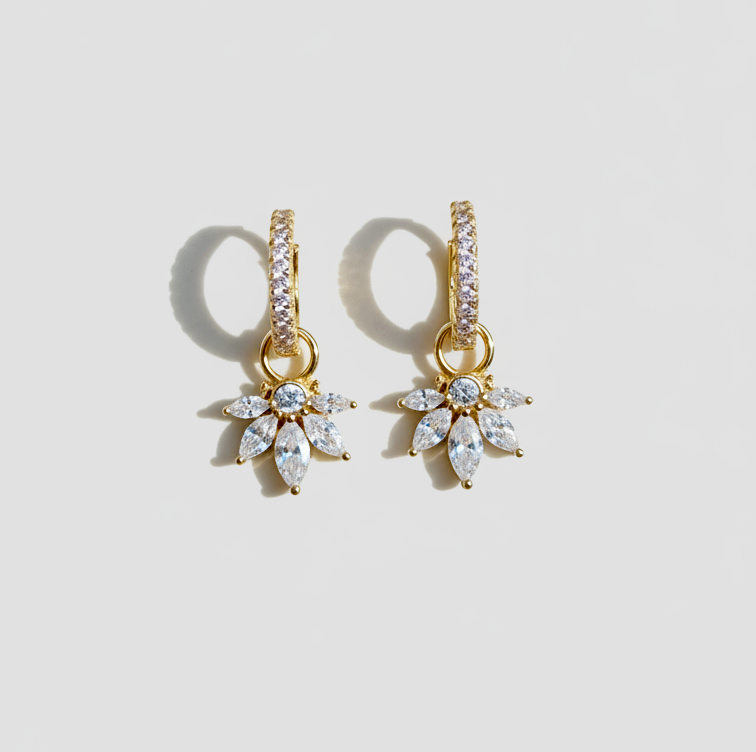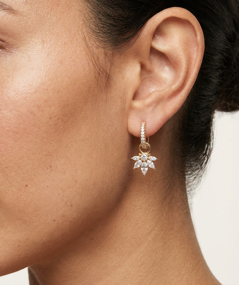 Meet the earrings that bloom with brilliance. These drop dangle earrings sparkle with marquise stones in a dainty floral cluster. Styled with dainty earring sets or worn alone, they turn everyday into an occasion.