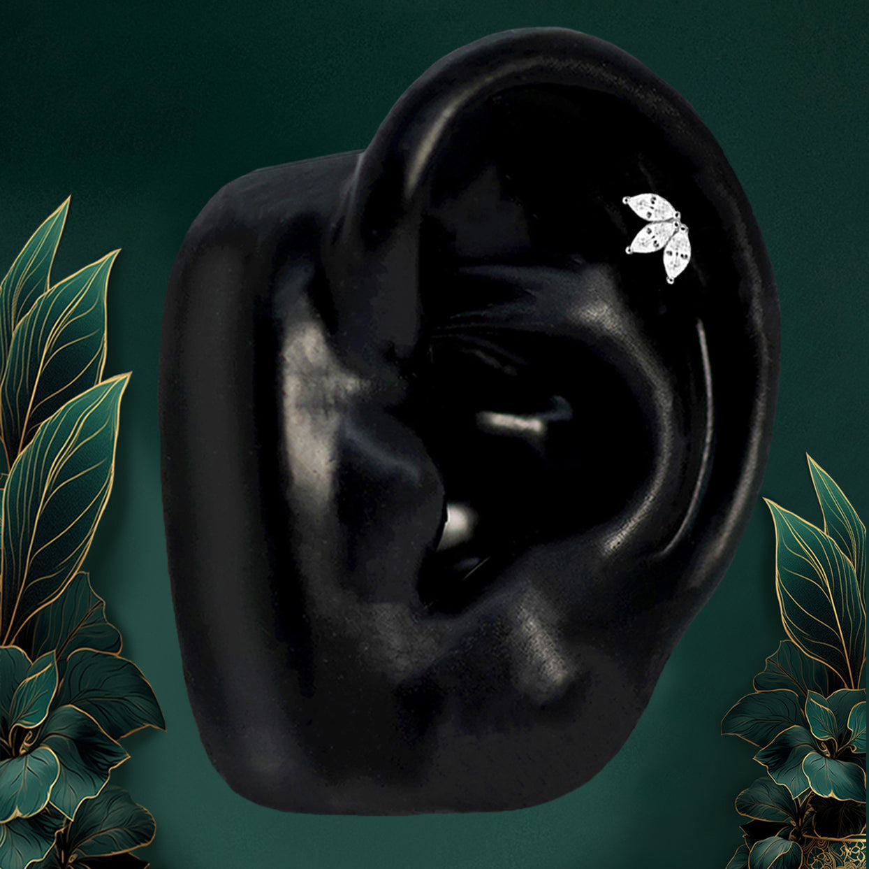 A refined flat back earring designed for versatility and all-day comfort. With its marquise-cut stones, this piece can be styled as helix earrings or worn in a conch piercing, making it a perfect addition to your curated ear stack. The secure flat back closure ensures it’s hypoallergenic, tarnish-proof, and ideal for sensitive ears. A timeless ear stud earring that brings both elegance and practicality to your jewelry collection. Hypoallergenic Earrings