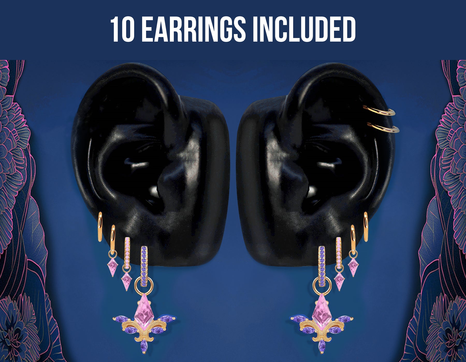 - Each of the 4 lobe earrings comes as pairs plus 2 helix earrings