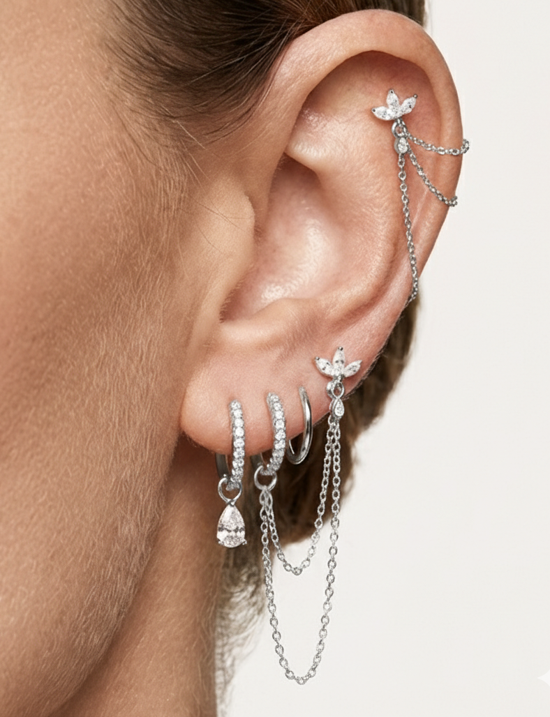 Double Piercing Earrings - Chain, Hoop & Floral Stud Earrings