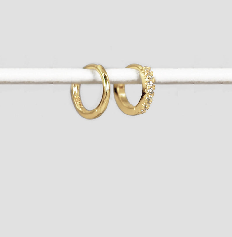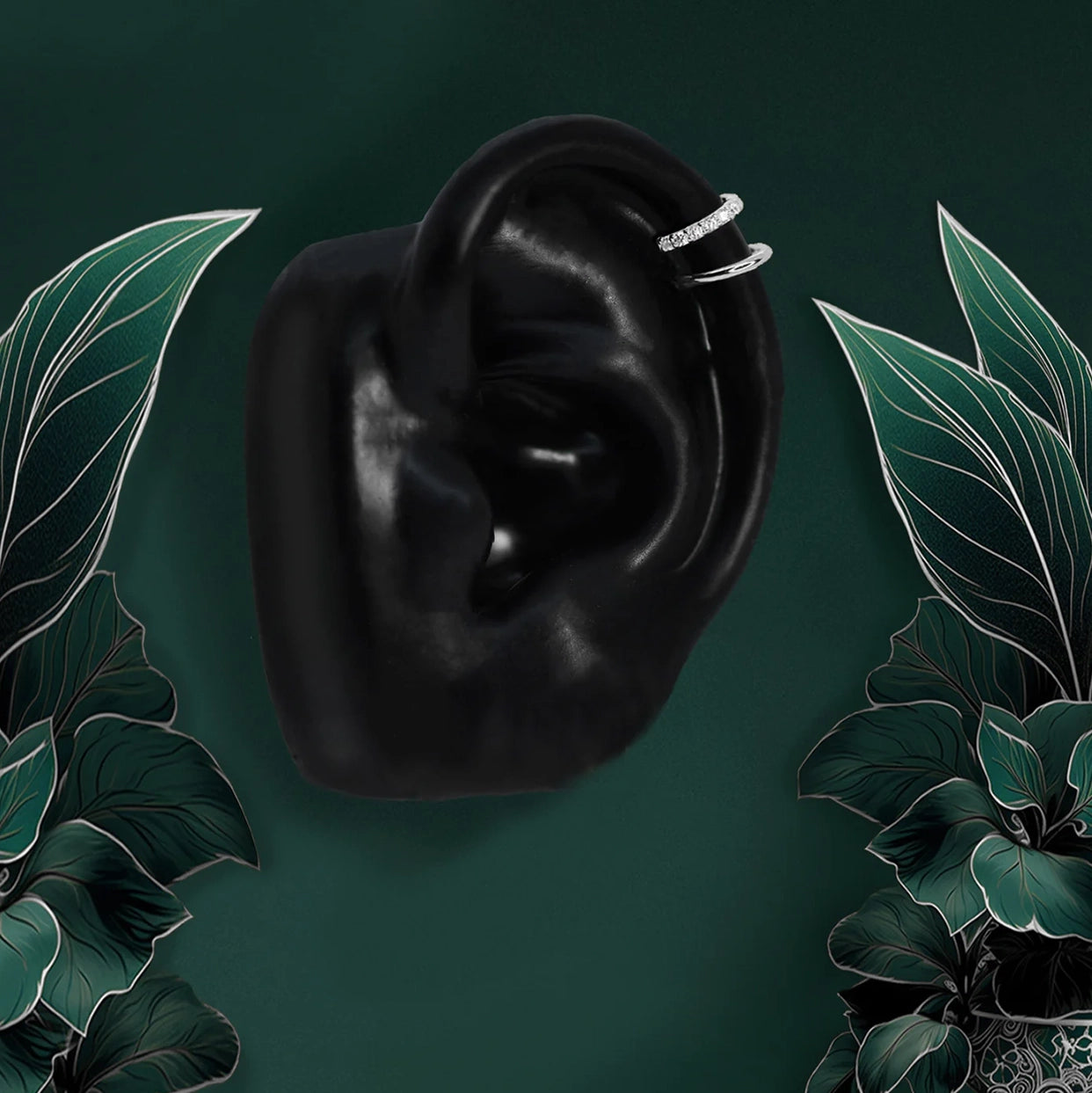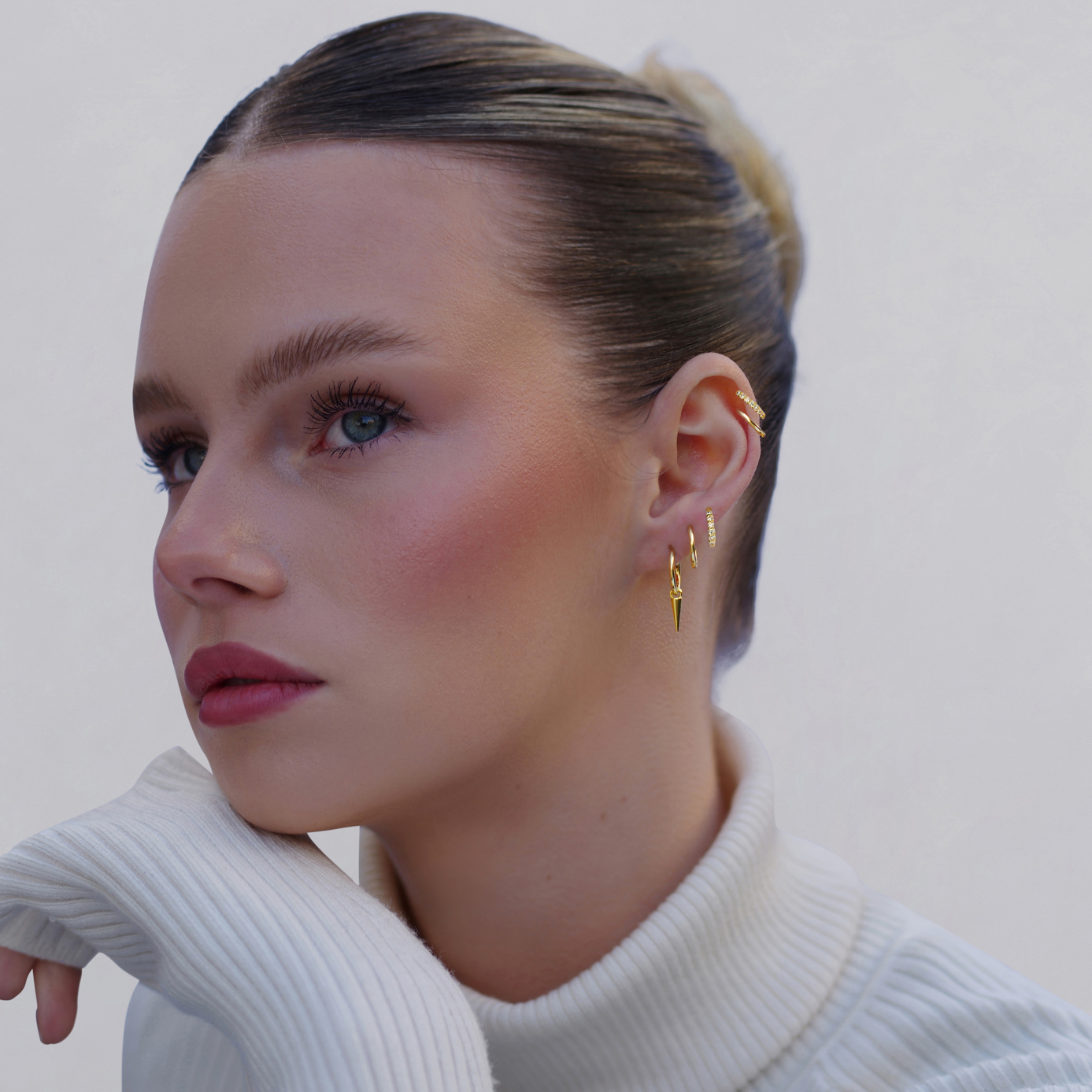 Add a touch of sophistication to your helix piercings with these minimalist huggie earrings. Featuring a secure fit and shimmering detail, they’re ideal for both casual and formal outfits. The perfect addition to any curated ear stack.