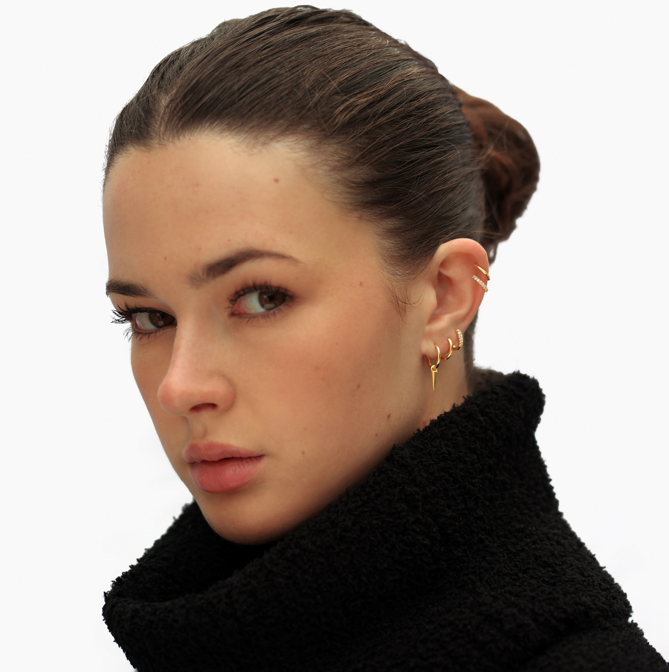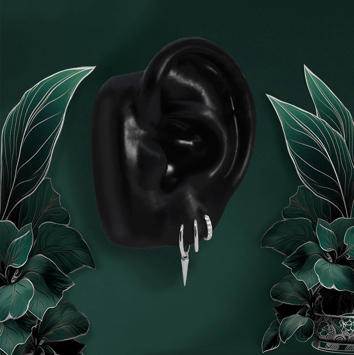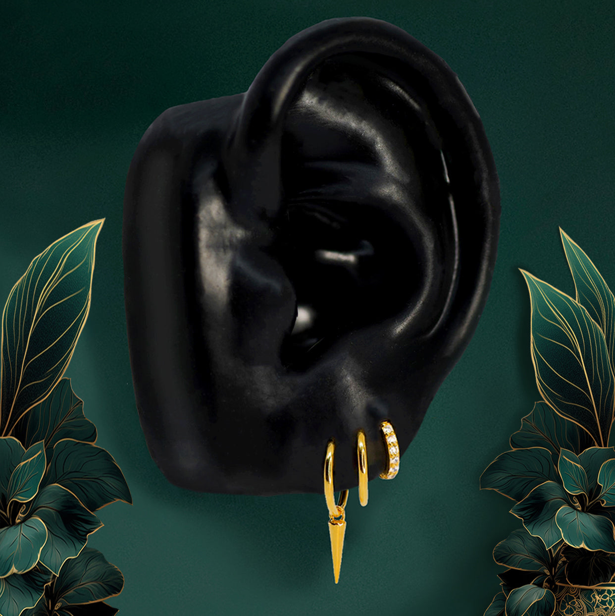 Channel your inner hero with our triple lobe piercing stack, inspired by Yelena Belova from Marvel’s Black Widow. Dipped in 18k Gold or Platinum and finished with shimmering Zirconia gems, this bestselling set lets you mix, match, and stack with playful edge. Your ear party just got cinematic.