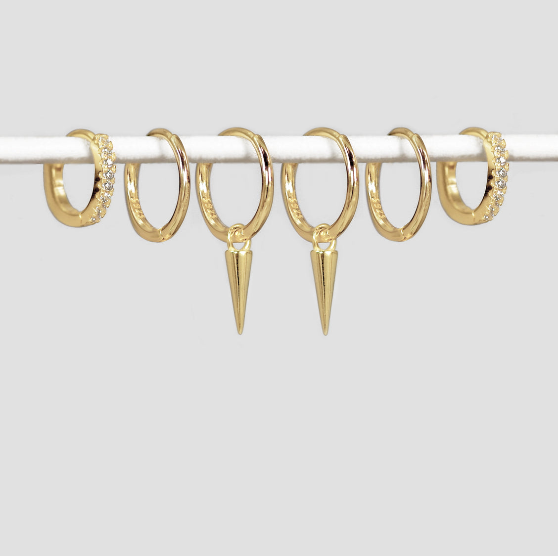 - 2 Pieces, 10mm Solid Hoops with Spike Pendants